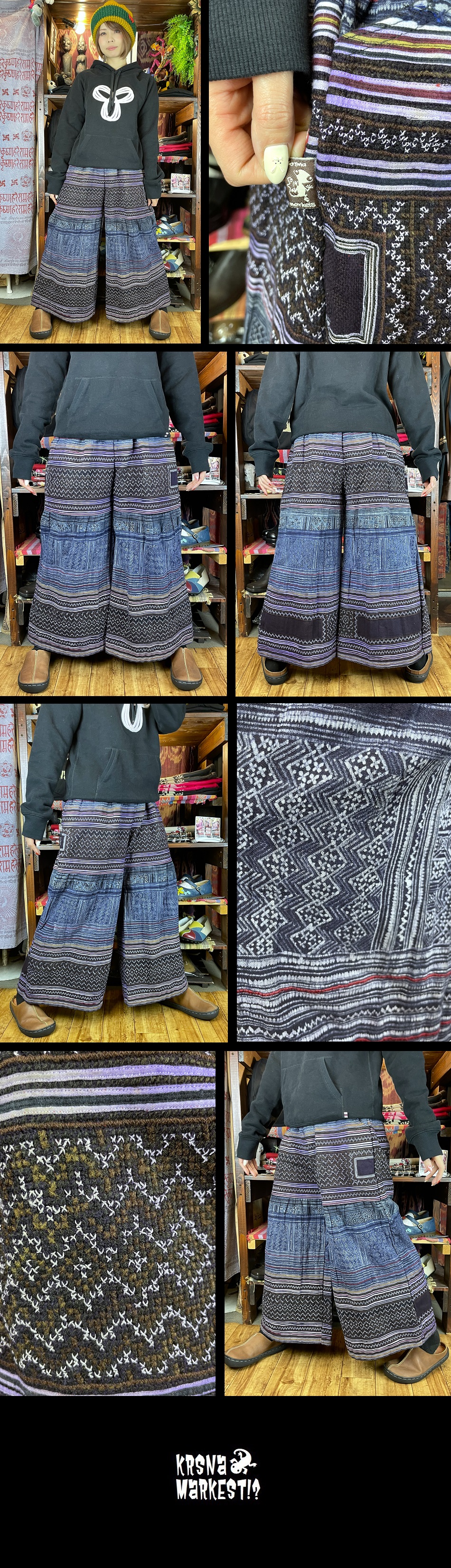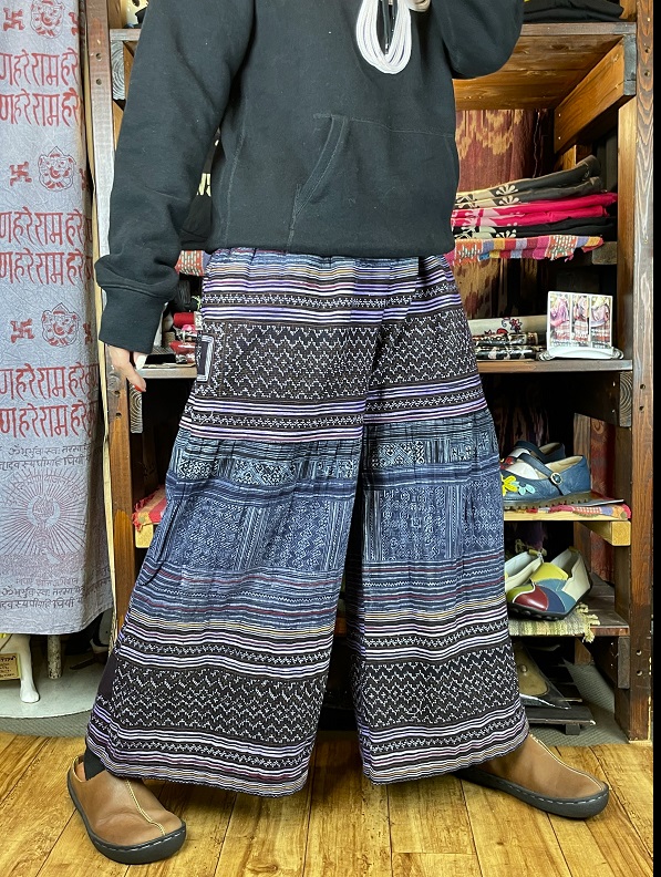 モン族ヴインテージ古布 ティアードワイドパンツ |